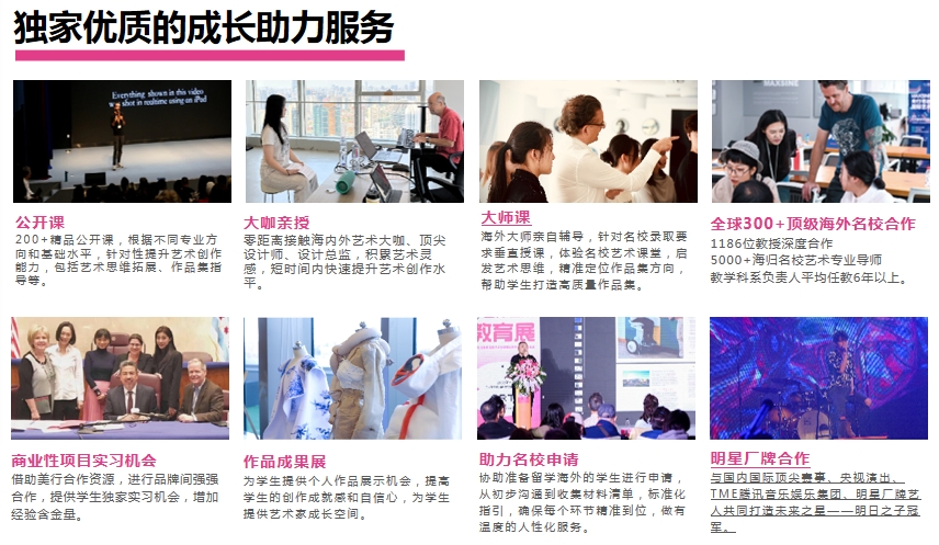 | 研学活动 | 校外艺术研学、海外院校本科衔接课、毕业展 | ||