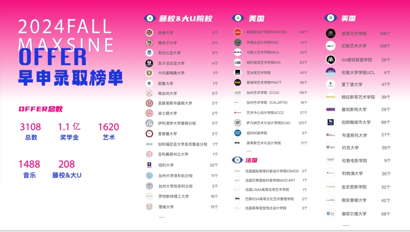| 帕森斯设计学院 | 340 |