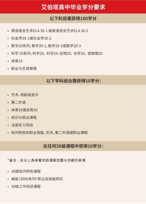 高中由10-12年级组成,有严格的学习计划,为学生即将进入全球大学和技术学校做准备。得益于强大的省级课程和教学方法,艾伯塔省的学生学术成绩在世界范围内名列前茅。