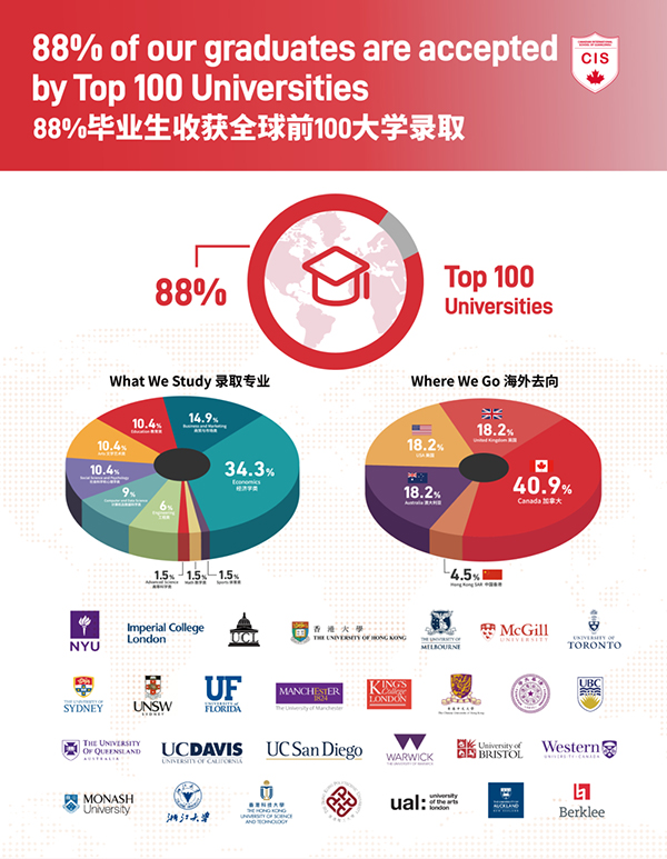 完成毕业所需学分后,加拿大国际学校的学生将获得艾伯塔省教育部认可的艾伯塔省高中文凭。我们的目标是让100%的学生毕业并获得艾伯塔省高中文凭并进入世界一流大学。