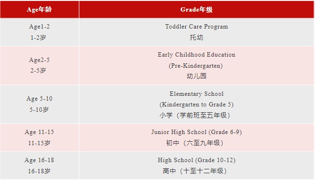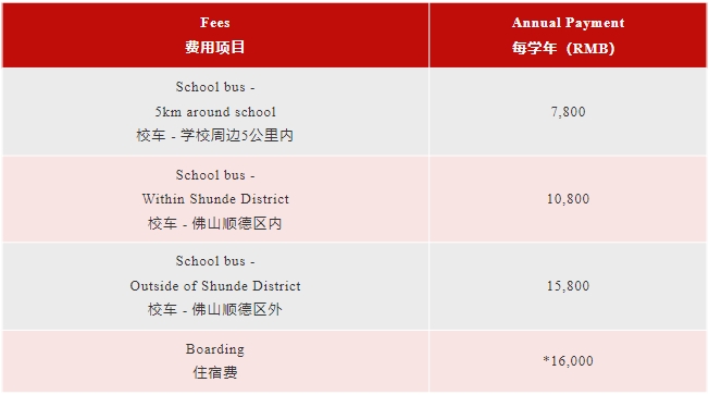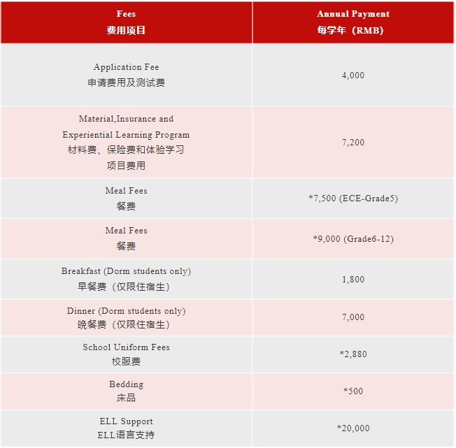 * 我们对小学1年级(含1年级)以上学生提供住宿。