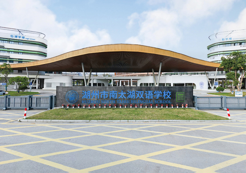 湖州市南太湖双语学校创建于2017年,是湖州市教育局直属唯一涵盖儿童之家、小学、初中、高中十六年一贯制学校学校位于南太湖之滨、西塞山前,毗邻湖州高铁站。占地面积12万平方米,建筑面积10万平方米。拥有儿童之家、小学、初中、高中、融合书院等各学部独立的教学大楼、学生公寓、教师公寓等,以及艺术大楼、STEAM大楼、图书馆、体育馆、高尔夫球馆、跆拳道馆、击剑馆、篮球馆、游泳馆、音乐剧场、钢琴房、舞蹈房、劳动教育基地、马场等现代化教育教学设施。