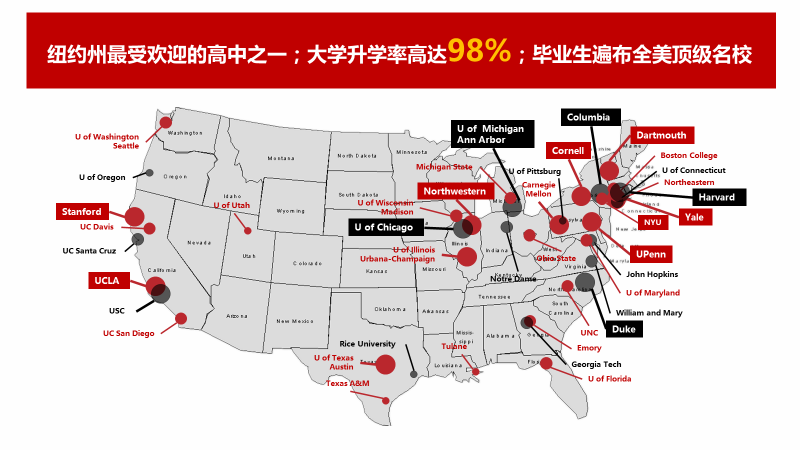 马丁路德高中:位于美国第一大城市纽约市,被美国教育委员会、美国大学入学考试委员会以及美国大学奖学金服务机构所认可,并加入美国政府STEM计划;往届毕业生进入哈佛大学、哥伦比亚大学等一流学府。