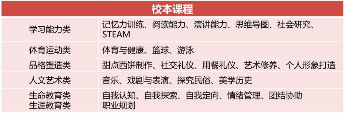 (2)校本课程从培育学生的品德、体魄、思维与气质四个纬度设计,旨在培养自尊自信、身心健康、善于思考、全能多样的国际性优秀人才。