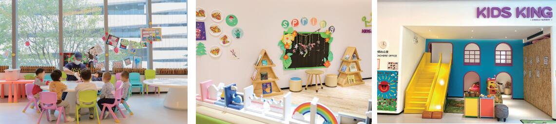 位于天河区汇景新城亚太国际文化交流中心三楼,室内建筑面积500m,共享汇景新城幼儿园自然优美的户外活动空间。设置三个班级,根据幼儿的年龄特点设置不同的功能室:玩具室、阅读室、艺术创作室、音乐游戏室、角色游戏室等,满足孩子的社交发展需求,激发孩子的潜能和创造力,是孩子们流连忘返的第二个家园。