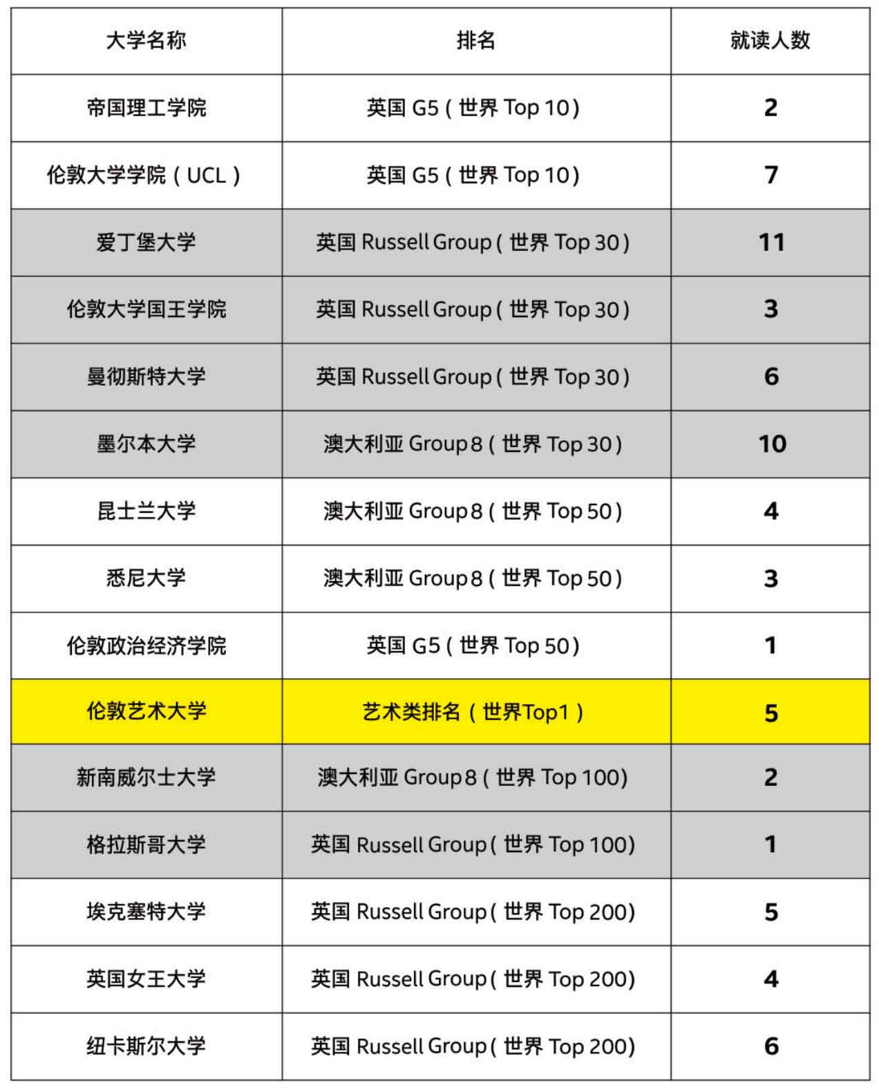 SACC英国课程中心部分毕业生大学录取情况