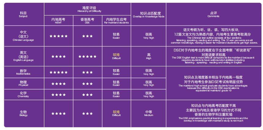 内地高考&DSE中国香港高考部分学科对比