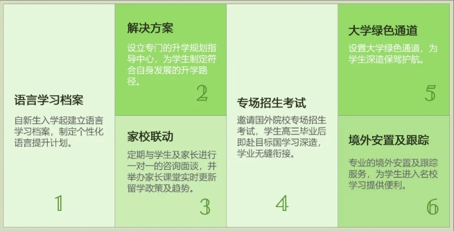 新亚学校于2014年开始小语种语言环境及文化的建设,享有区域内最优质的第二外语教学资源,在师资建设、教学开展等方面积累了丰富的经验,针对学生个性化需求开设德语项目班(DSD)、A-Level 2+1德国高中班及德奥高中预备班,全面提升学生的德语语言能力、英语语言能力及综合学科能力,帮助学生实现定制升学。