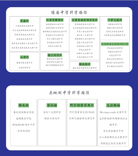 学生入学我校就读1年,即可选择德国或奥地利本土高中就读,未来申请德奥大学可以当地学生身份申请,不受专业限制的影响(比如未来想在德、奥学习法律、医学等专业)。