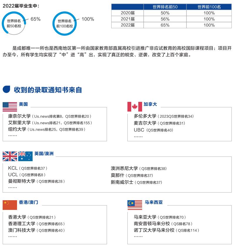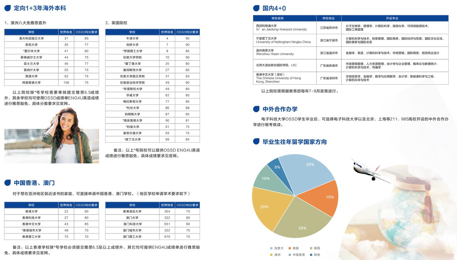全球大学直通:学生从电子科技大学1年学业毕业后,可直通美国、加拿大、英国、澳洲、新西兰、日本、韩国、荷兰、瑞士、德国等全球知名大学,不限制国家,不限制专业。