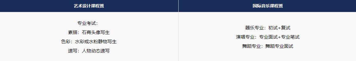 专业班型:艺术设计课程班、舞蹈专业课程班、声乐专业课程班、器乐专业课程班