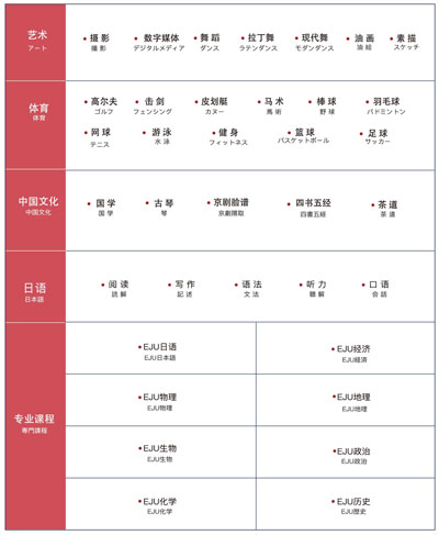 涉及日语精讲、日语口语、日语听力、日语写作、日语能力考冲刺、艺术课程