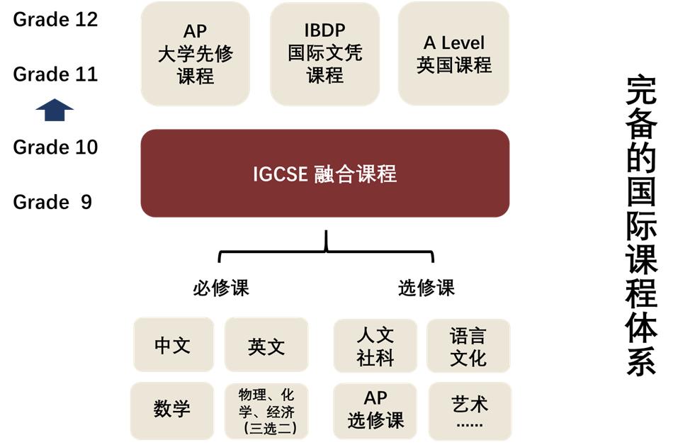 中文/Chinese、英语/ESL、数学/Maths、物理/Physics&化学/Chemistry(必选其一或二)、经济/Economics、全球视野/global perspectives、体育/P.E.