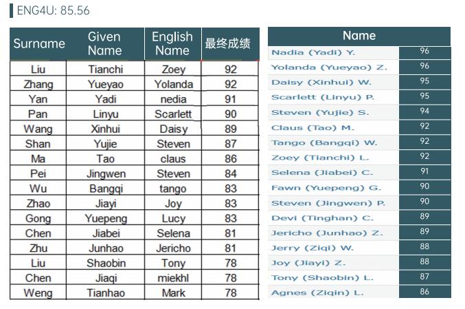 成绩:OSSD12年级平均分96.5