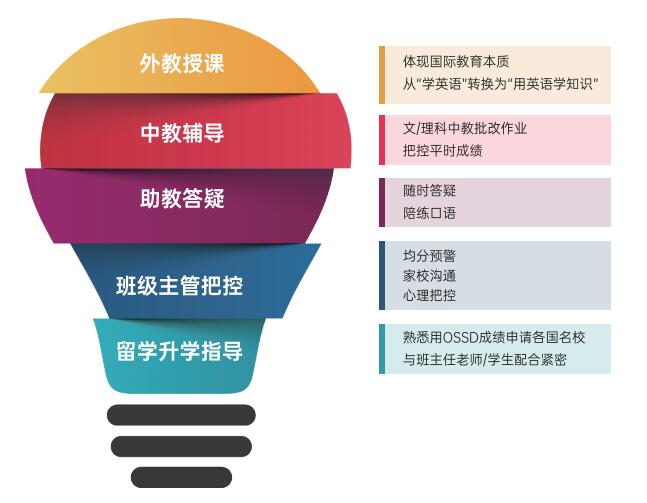④“五位一体"教学管理模式:外教授课/中教辅导/助教答疑/主管把控/升学指导