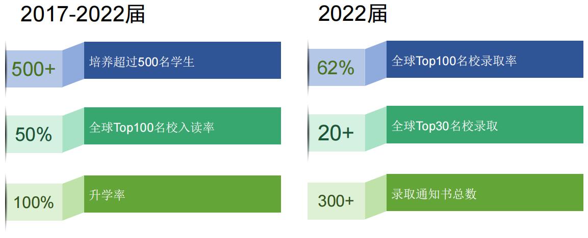 连续四年保持100%海外本科升学率,实验班百强名校录取率高达100%。卓越的师资队伍、严谨的治学态度、严格的教学管理以及与国外名校多年的合作经验,为学生提供顶尖名校升学保障。
