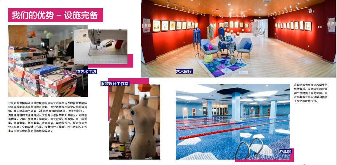 新东方教育集团旗下的新东方国际双语学校和新东方集团旗下的斯芬克国际艺术教育强强联手打造的国际艺术高中,集合新东方文理学科与艺术学科的最强师资,以向世界知名艺术专业大学输送人才为宗旨,以打造最强国际艺术教育为核心。