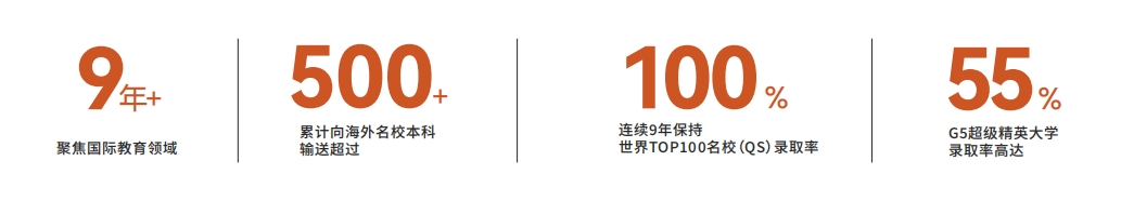 精英知了国际书院拥有一流的海外升学指导团队,包括牛剑外籍专家团队,并与全球50多所顶尖大学,建立申请绿色通道,成功帮助超过400多名学子,进入英、美、加、澳、香港、新加坡等地的顶尖学府。