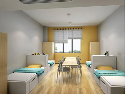 我们的校舍四人一间,每间房间都宽敞、明亮、极具现代化拥有独立的共用盥洗室。宿舍区域配备有设计感的休闲区、独立电视休息室以及适合不同年龄层的公共休息区和私人学习区。无线互联网覆盖整个寄宿区域。学校还设有全天24小时的电视监控探头,校园外有高耸的围墙,校内有全天24小时保安。