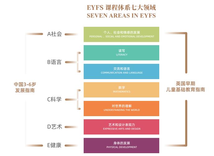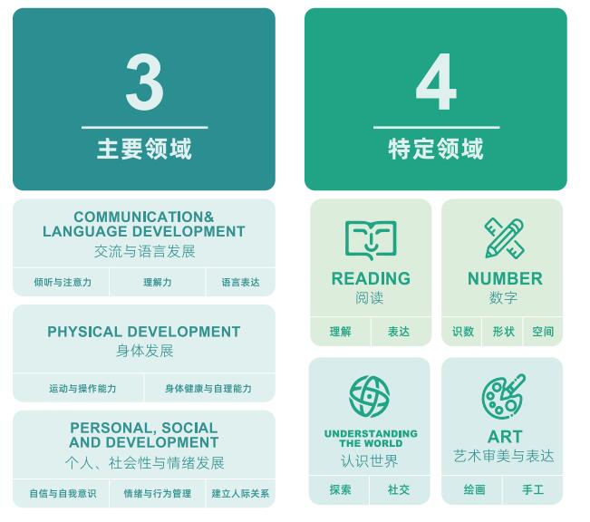 EYFS (Early Years Foundation Stage)英国儿童早期基础教育指南,通过建立积极的关系和创设赋能的环境,利用有效学习特征来支持儿童的学习,通过基于“观察-评估-计划”闭环的开放式教学,支持孩子在七大学习领域(交流与语言发展、身体发展、个人、社会性与情绪发展、阅读、数字、认识世界、艺术审美与表达)获得更好的发展。
