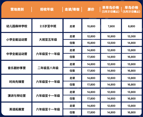 今年夏令营面向幼儿园至中学各年龄段孩子精心开设了7种不同营地项目选择,主题涵盖运动、学术、音乐剧、时尚、演讲、辩论、森林学校等,沉浸式英语课堂,多层次满足孩子个性化成长需求。探索多元热爱,让卓越绽放。