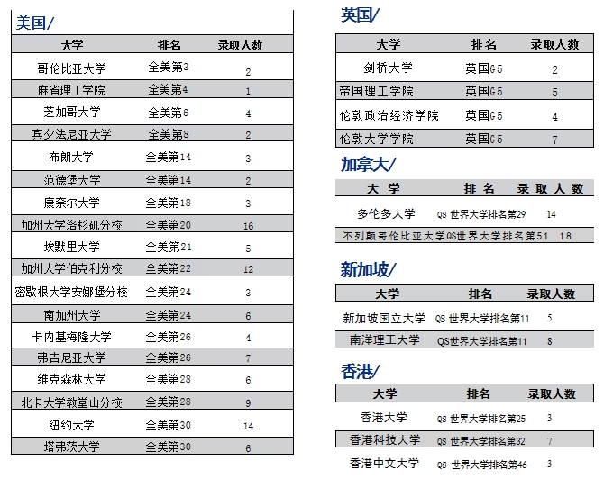 升学指导老师以往录取成果榜